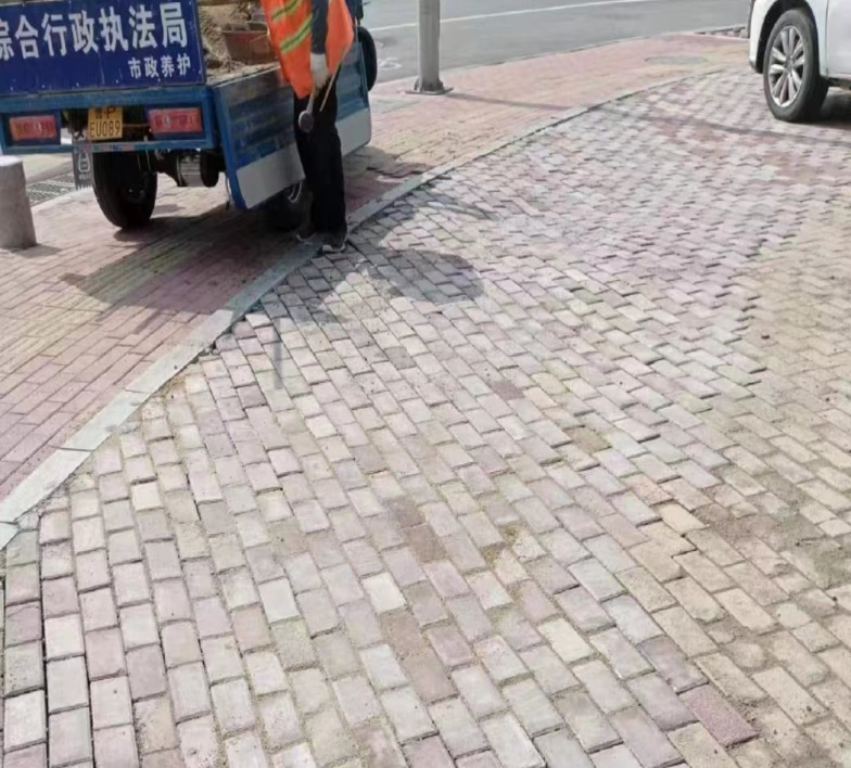 接到市民反映的问题后,冠县综合行政执法局高度重视,第一时间安排工作人员赶赴现场核实情况。经现场查看,近期雨水较多,导致此处人行道上多块地砖松动,有的上翘,有的塌陷,路面地砖参差不齐,对过往行人造成不便,存在安全隐患。执法局组织市政养护工人将地砖挪移后,使用混凝土对塌陷路面进行回填,并重新铺设地砖,解决了路面下沉地砖塌陷问题,为市民营造了一个良好的出行环境。